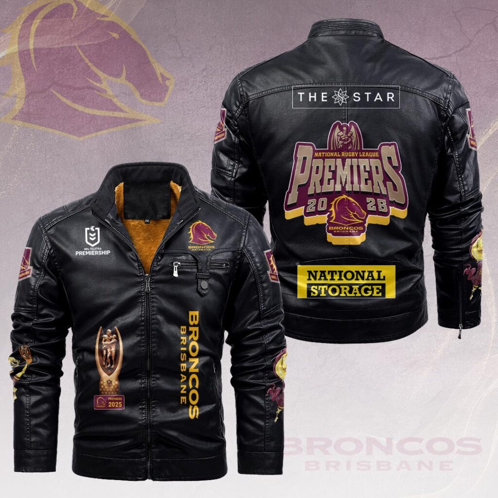 Brisbane Broncos 2025 NRL Premiers 2D Leather Yellow Fleece Jacket - HOATT14537