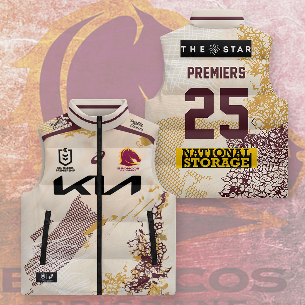 Brisbane Broncos Premiers 2025 3D Sleeveless Down Jacket - TMTHU1634