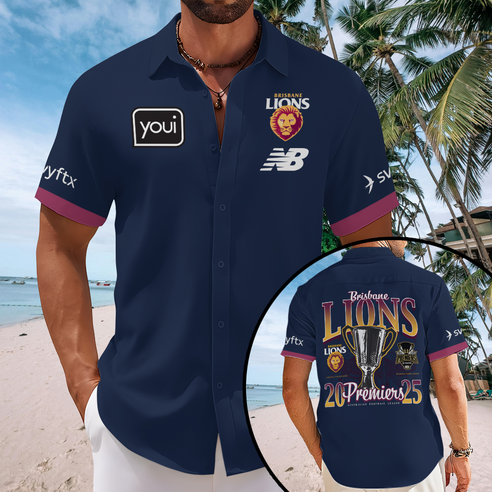 Brisbane Lions 2025 Premiers Short Sleeve Button-Down Shirt - MAITM13416
