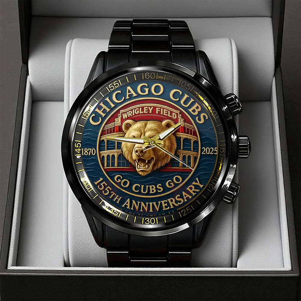Chicago Cubs 155th Anniversary Black Stainless Steel Watch - TANTN17996