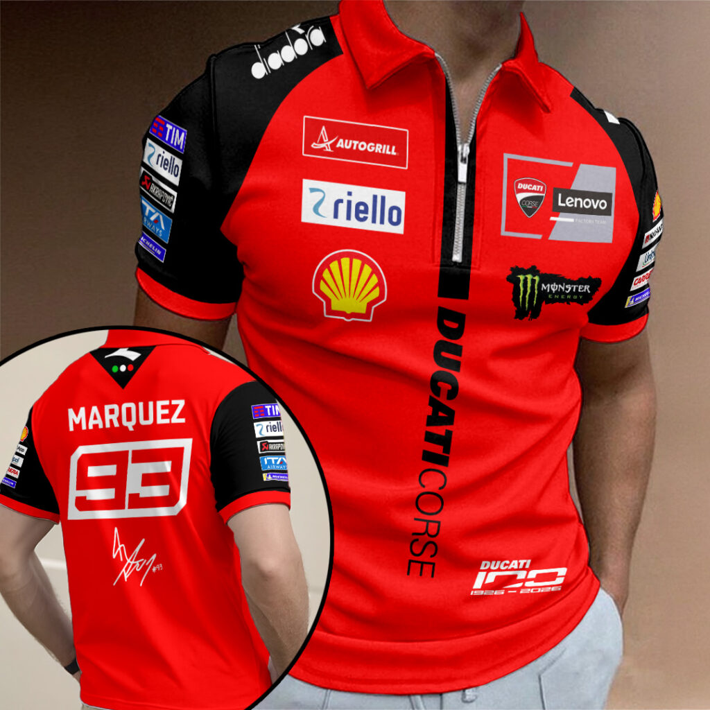 This Custom Zip Polo Shirt makes a perfect gift for Ducati Lenovo Team x Marc Márquez fans.
