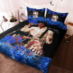 The duvet cover features a single-sided, full-color print on luxurious brushed polyester fabric, which is soft and lightweight to the touch. The back of the duvet cover is black or white.