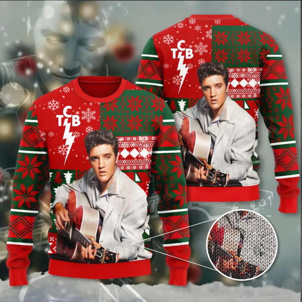 This Custom Ugly Sweater makes a perfect gift for Elvis Presley fans.