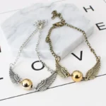 At the center sits a polished golden sphere with delicately detailed wings on each side, beautifully representing the iconic Golden Snitch. The bracelet is available in two elegant finishes—vintage gold-tone and sleek silver-tone—so you can choose the look that best suits your style. An adjustable chain with a secure lobster clasp ensures a comfortable and customizable fit.