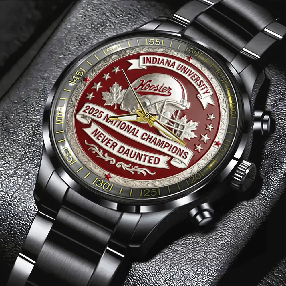 Indiana Hoosiers Football 2025 National Champions Black Stainless Steel Watch – MAITM14545