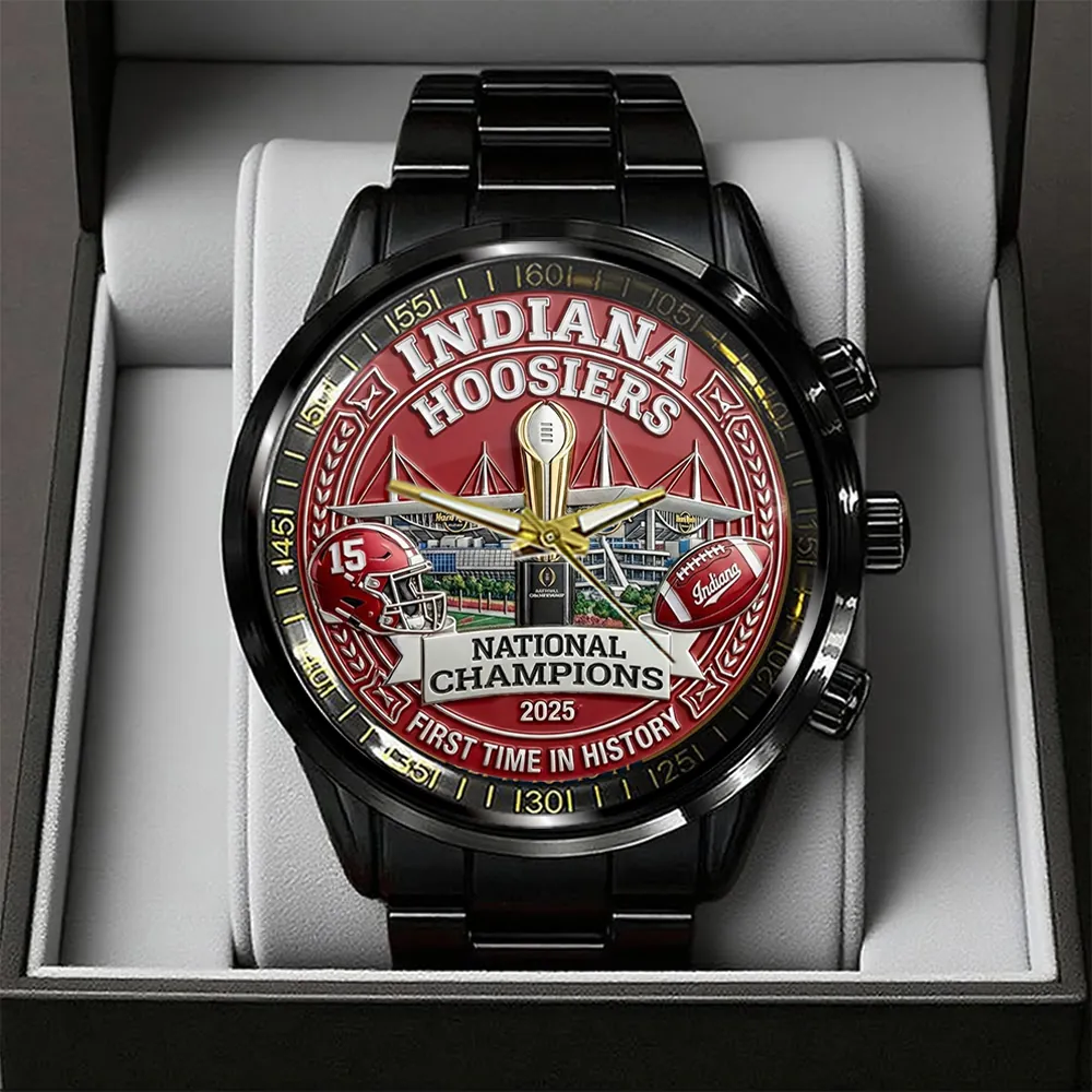 Indiana Hoosiers Football 2025 National Champions Black Stainless Steel Watch – TANTN20533