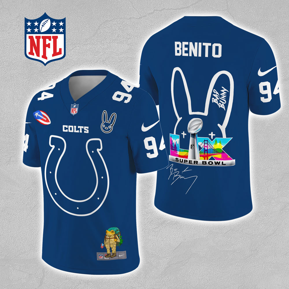 This Custom Football Jersey makes a perfect gift for Indianapolis Colts x Bad Bunny fans.