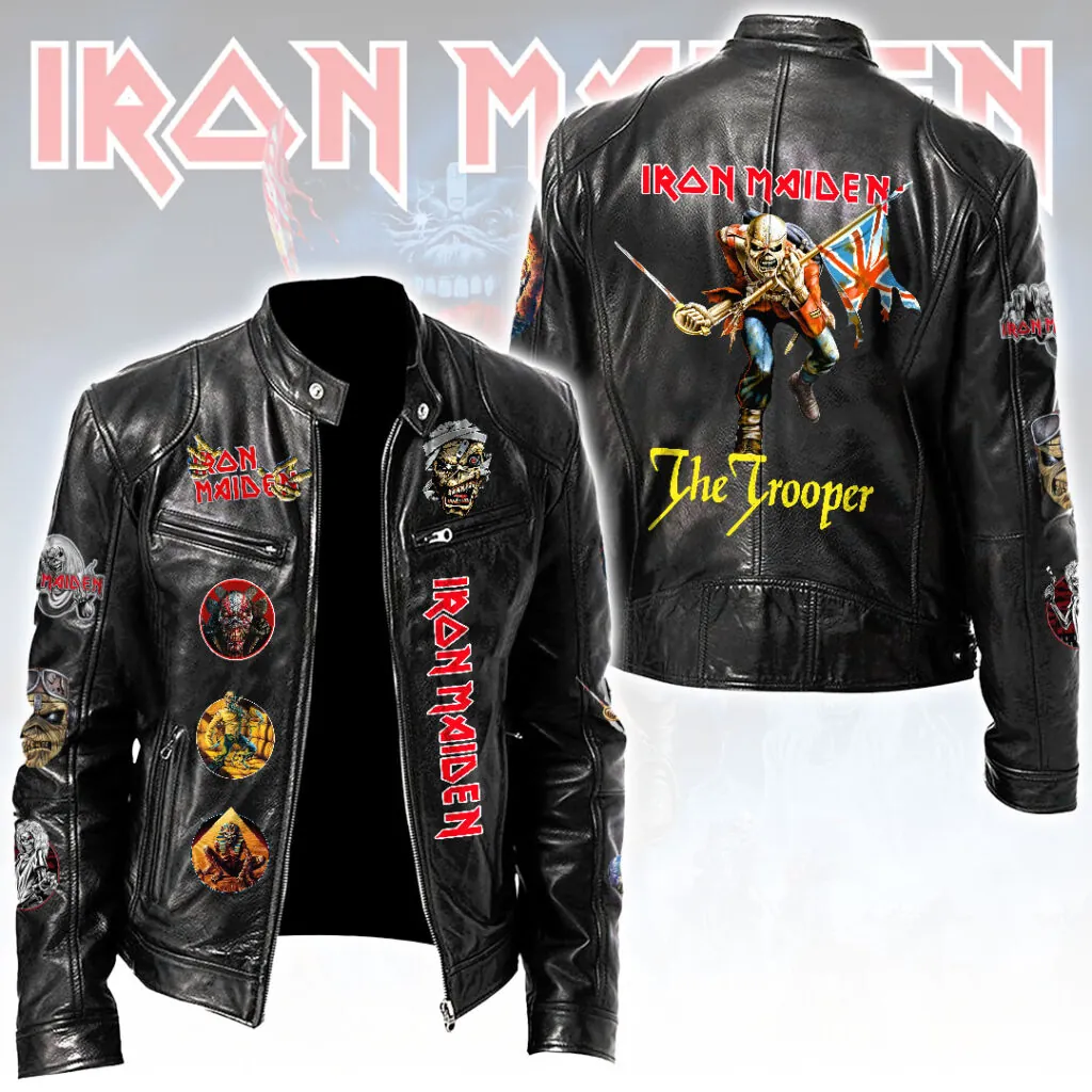 This Motorcycle Leather Jacket makes a perfect gift for Iron Maiden fans.