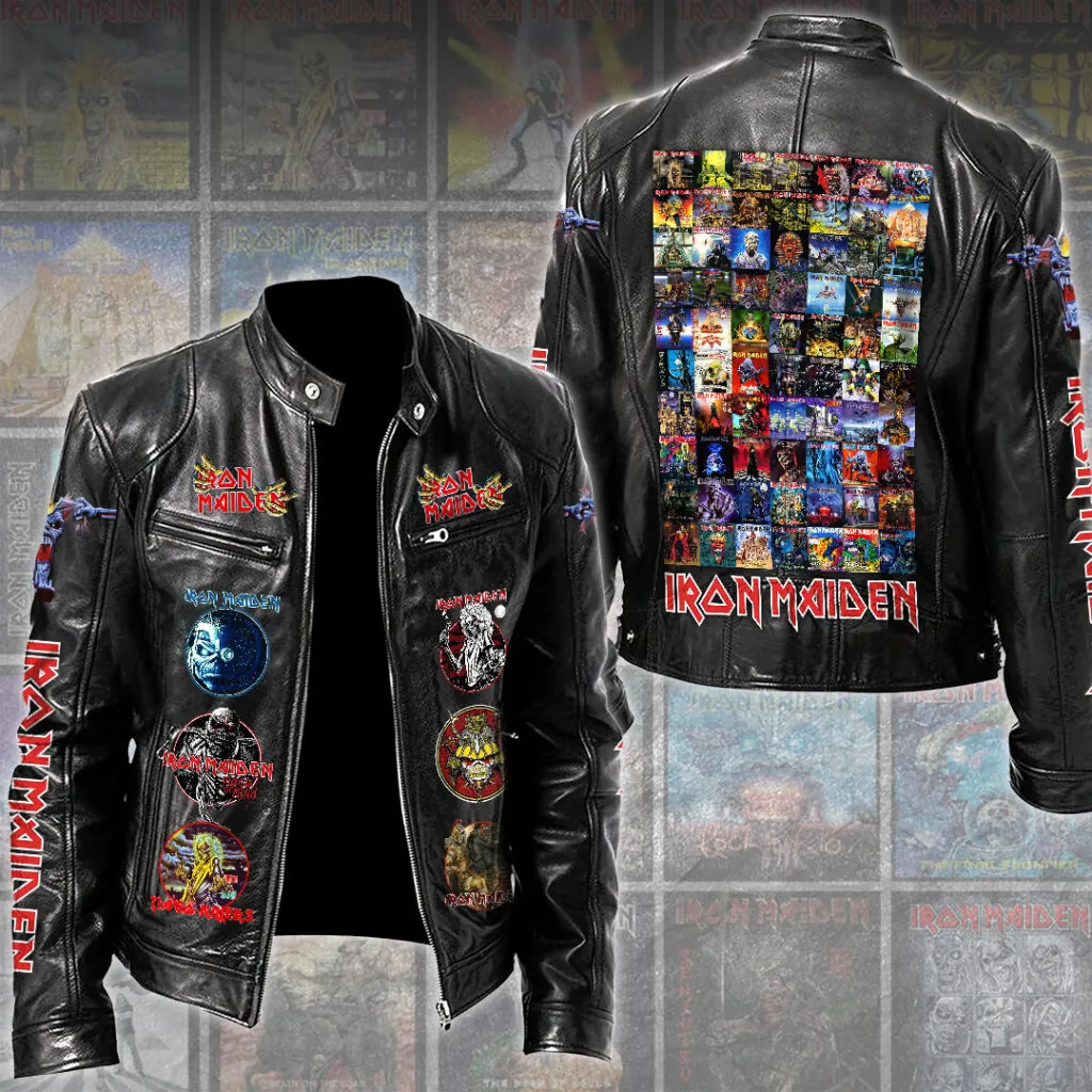 This Motorcycle Leather Jacket makes a perfect gift for Iron Maiden fans.