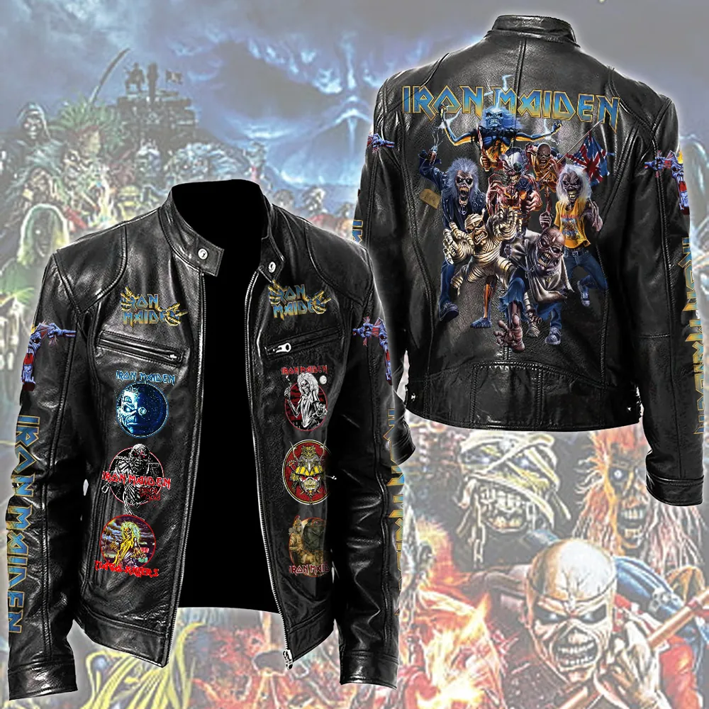 This Motorcycle Leather Jacket makes a perfect gift for Iron Maiden fans.