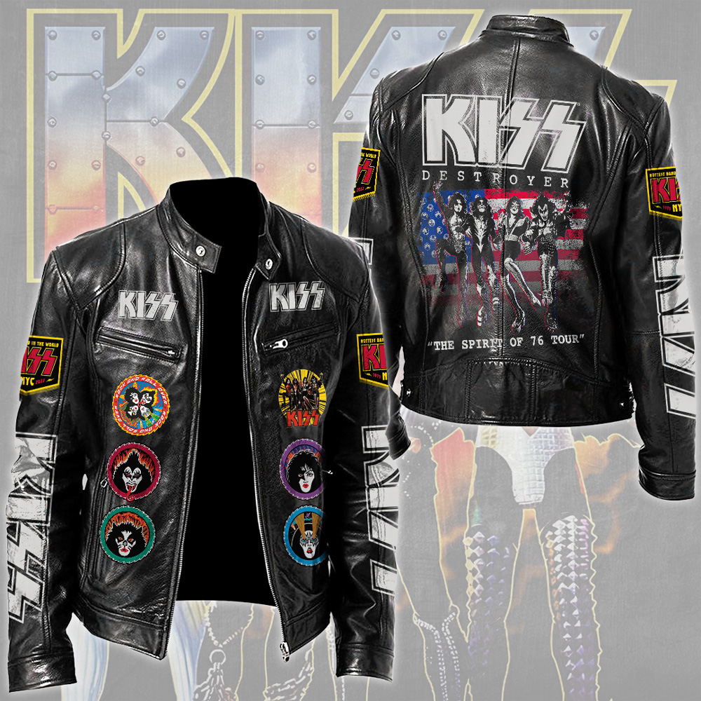 This Motorcycle Leather Jacket makes a perfect gift for KISS fans.