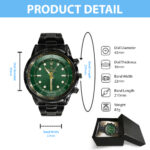 Crafted from high-quality stainless steel, this watch is built to withstand the test of time. The black coating not only adds a touch of luxury but also enhances its durability, making it resistant to scratches and wear.