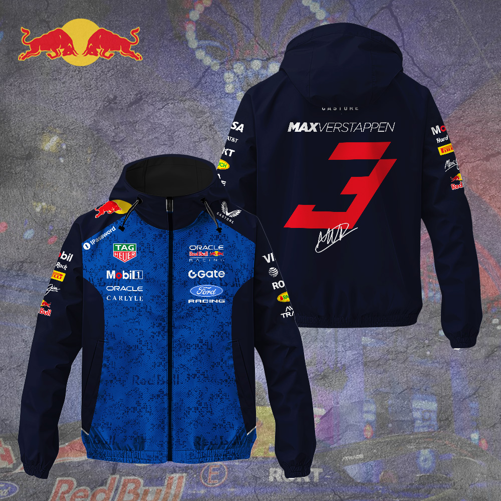 This Custom Windbreaker Jacket makes a perfect gift for Red Bull Racing x Max Verstappen fans.