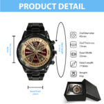 Crafted from high-quality stainless steel, this watch is built to withstand the test of time. The black coating not only adds a touch of luxury but also enhances its durability, making it resistant to scratches and wear.