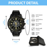 Crafted from high-quality stainless steel, this watch is built to withstand the test of time. The black coating not only adds a touch of luxury but also enhances its durability, making it resistant to scratches and wear.