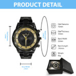 Crafted from high-quality stainless steel, this watch is built to withstand the test of time. The black coating not only adds a touch of luxury but also enhances its durability, making it resistant to scratches and wear.