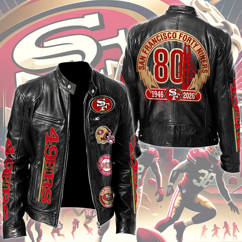 San Francisco 49ers 80th Anniversary Motorcycle Leather Jacket – TMTHU3893