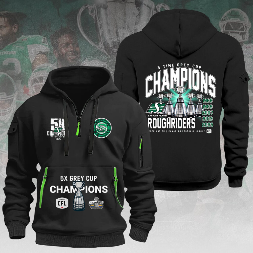Saskatchewan Roughriders 2025 Grey Cup Champions 2D Quarter Zip Hoodie – HOATT14857