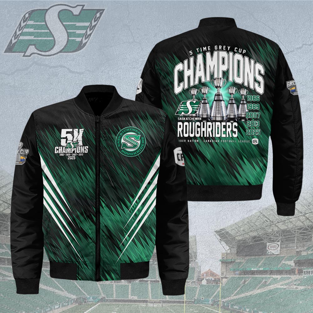 Saskatchewan Roughriders 2025 Grey Cup Champions 3D Bomber Jacket – HOATT15138