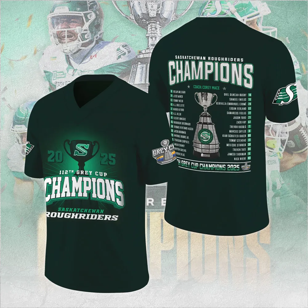 Saskatchewan Roughriders 2025 Grey Cup Champions 3D Football Jersey – MAITM13900