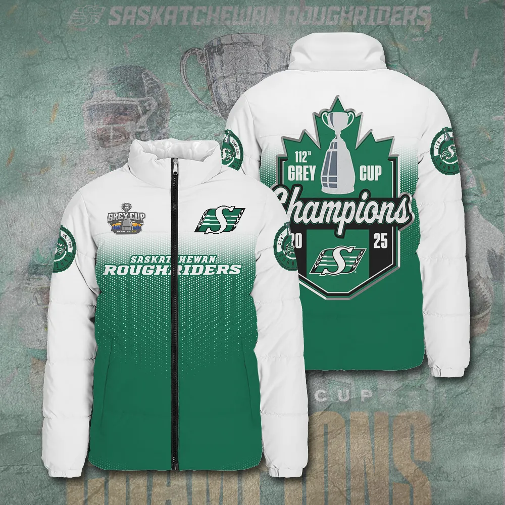 This 3D Stand Collar Puffer Jacket makes a perfect gift for Saskatchewan Roughriders fans.