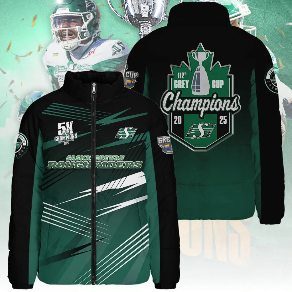 Saskatchewan Roughriders 2025 Grey Cup Champions 3D Stand Collar Puffer Jacket – TANTN18981