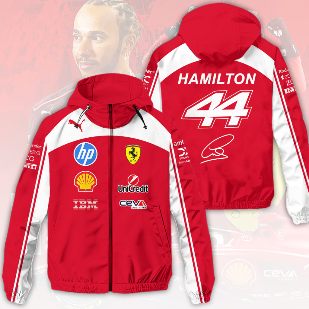 This Custom Windbreaker Jacket makes a perfect gift for Scuderia Ferrari x Lewis Hamilton fans.