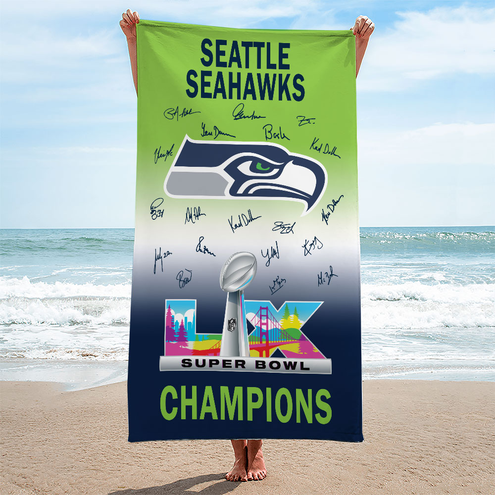 Seattle Seahawks 2025 Super Bowl LX Champions Rectangle Beach Towel – TMTHU3866