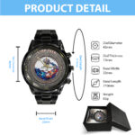 Crafted from high-quality stainless steel, this watch is built to withstand the test of time. The black coating not only adds a touch of luxury but also enhances its durability, making it resistant to scratches and wear.