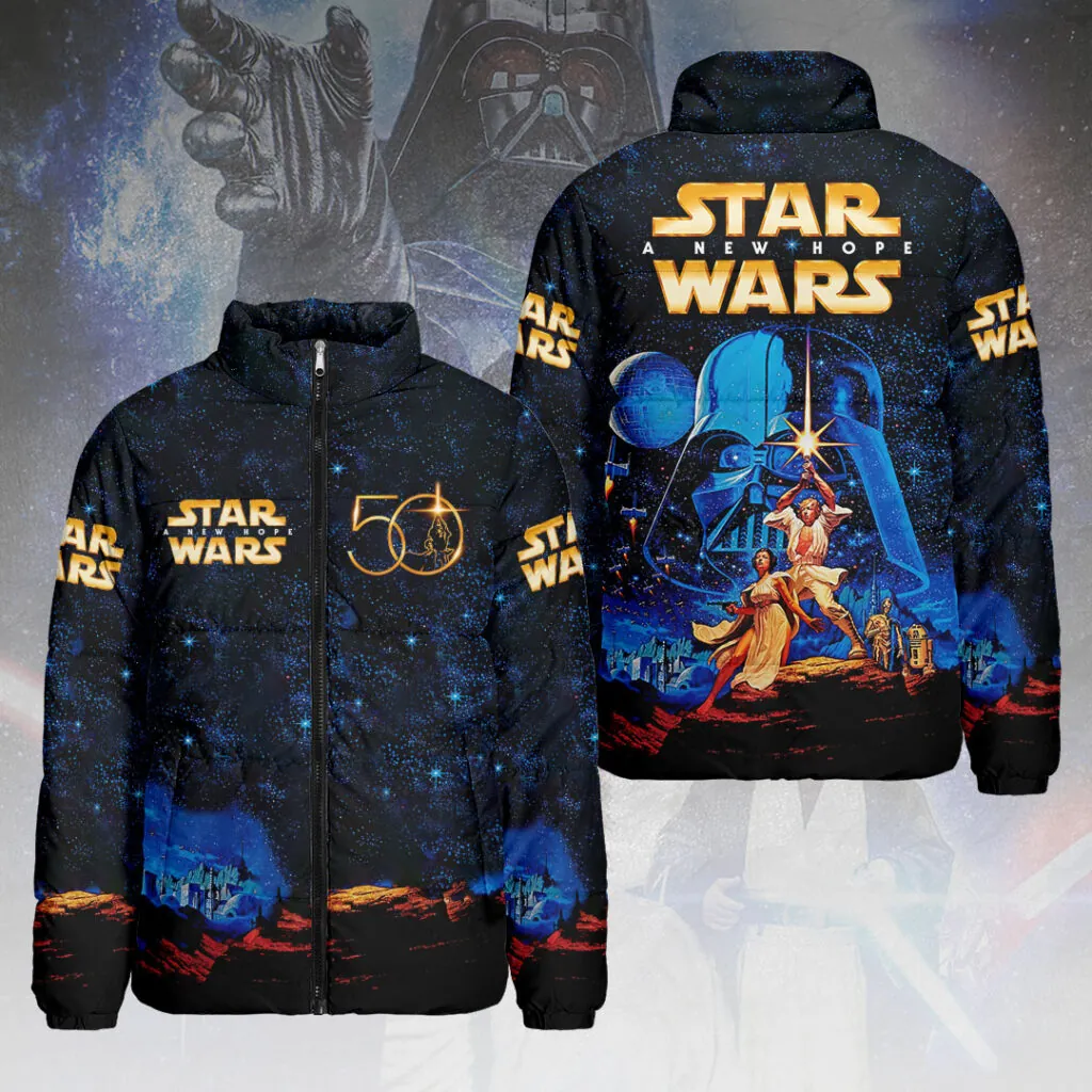 This 3D Stand Collar Puffer Jacket makes a perfect gift for Star Wars fans.