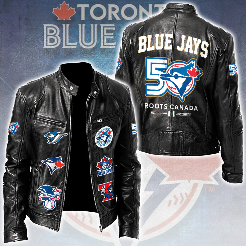 This Motorcycle Leather Jacket makes a perfect gift for Toronto Blue Jays fans.