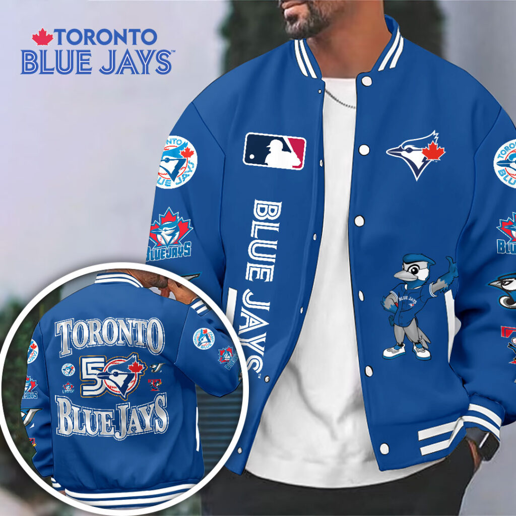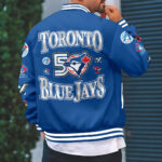 This Custom Varsity Jacket makes a perfect gift for Toronto Blue Jays fans.