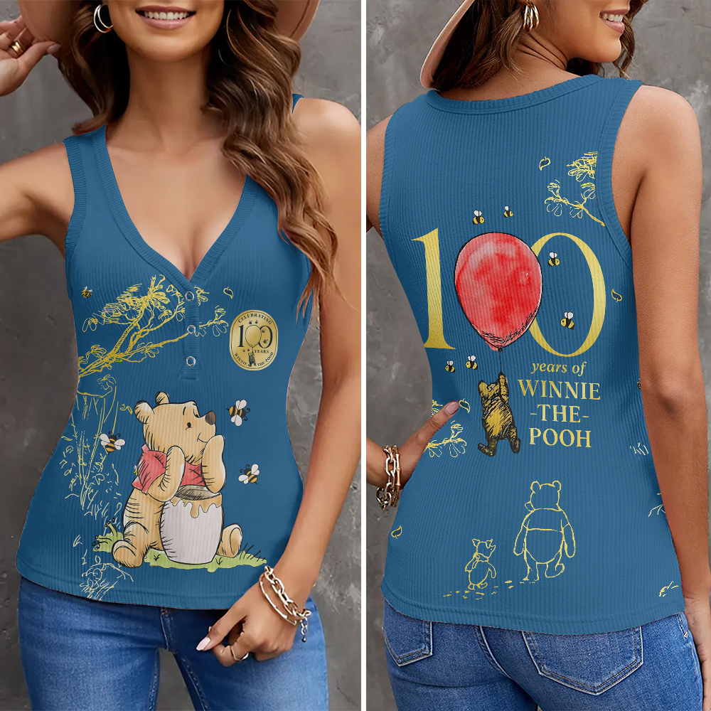 This Women V-Neck Ribbed Tank Top makes a perfect gift for Winnie-the-Pooh fans.