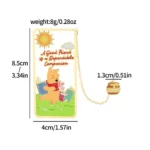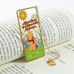 This beautifully designed metal bookmark features Winnie-the-Pooh and Piglet enjoying a peaceful reading moment beneath a bright sun, accompanied by the uplifting quote “A Good Friend is a Dependable Companion.” Finished with colorful enamel details and a polished gold-tone frame, it also includes a delicate hanging chain with a sweet “Hunny” pot charm for added character and easy page marking.